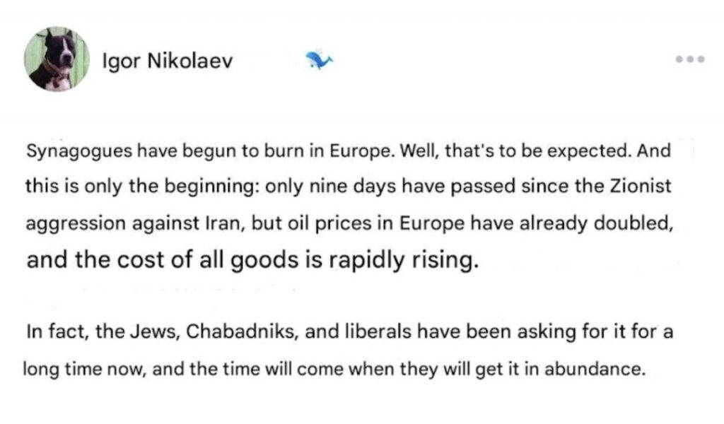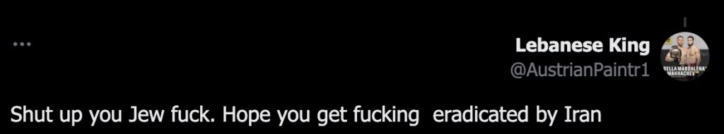 The military and geopolitical tension with Iran has provided a platform for the open endorsement of violence against the Jewish people. We are observing a trend where opposition to Israel is deteriorating into explicitly genocidal rhetoric, including the glorification of Iranian aggression and calls for the total “elimination” of the Jewish state. These calls to violence are aimed at Jews globally, by framing them as the “hidden hand” behind global suffering, effectively utilizing the war to normalize and validate calls for mass violence against Jews.