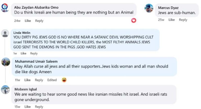 Throughout 2025, FOA placed significant emphasis on locating and removing harmful comments, removing over 1,000 comments. The antisemitic comments are frequent under pro-Israeli content, they are also highly prevalent in the comment sections of biased news outlets such as the BBC and Al Jazeera. By focusing specifically on these discussion threads, FOA was able to target these comments more effectively. These comments were collected during October and December 2025. All these comments have since been removed.